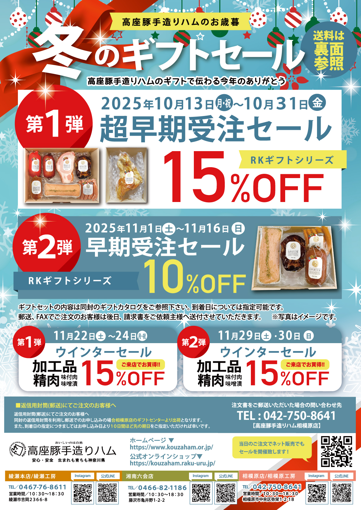日頃より高座豚手造りハムをご愛顧いただきありがとうございます。